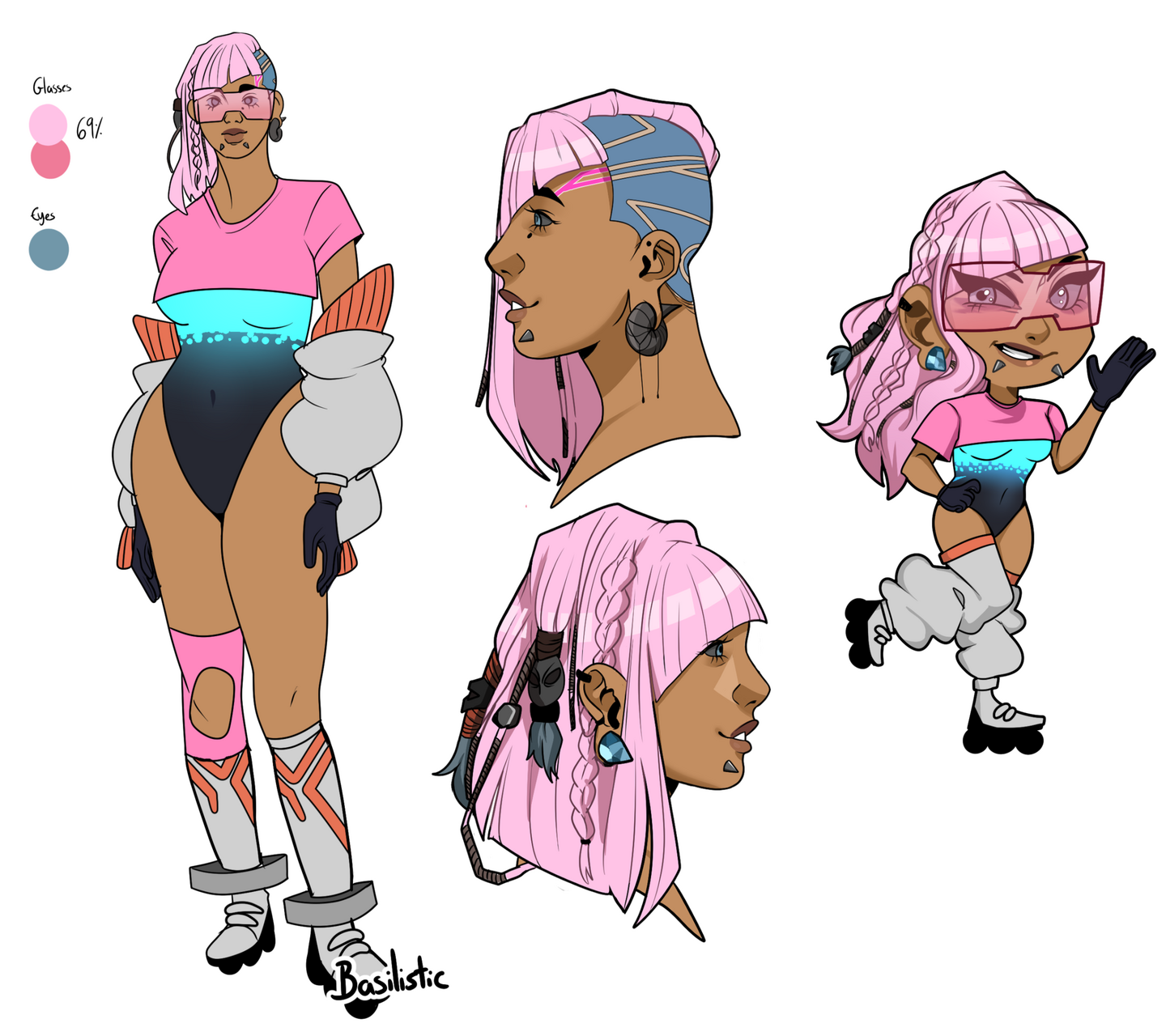 Flat coloring + Different poses + 4 expressions (animated, .GIF): 40EUR